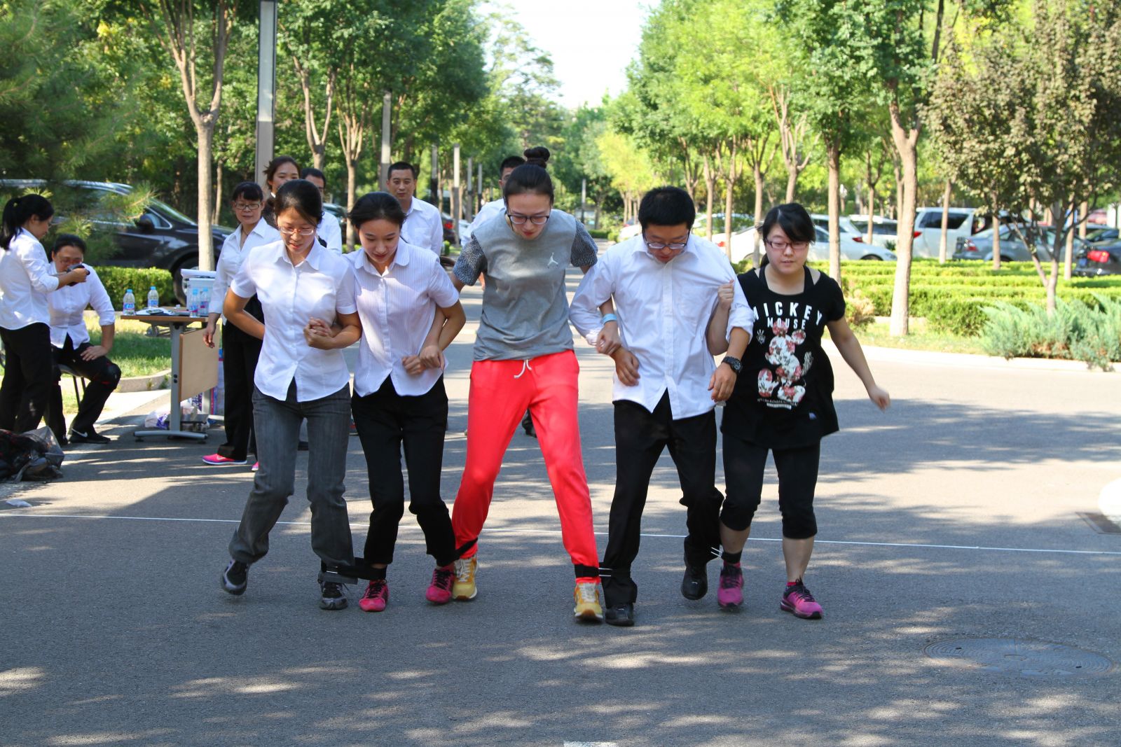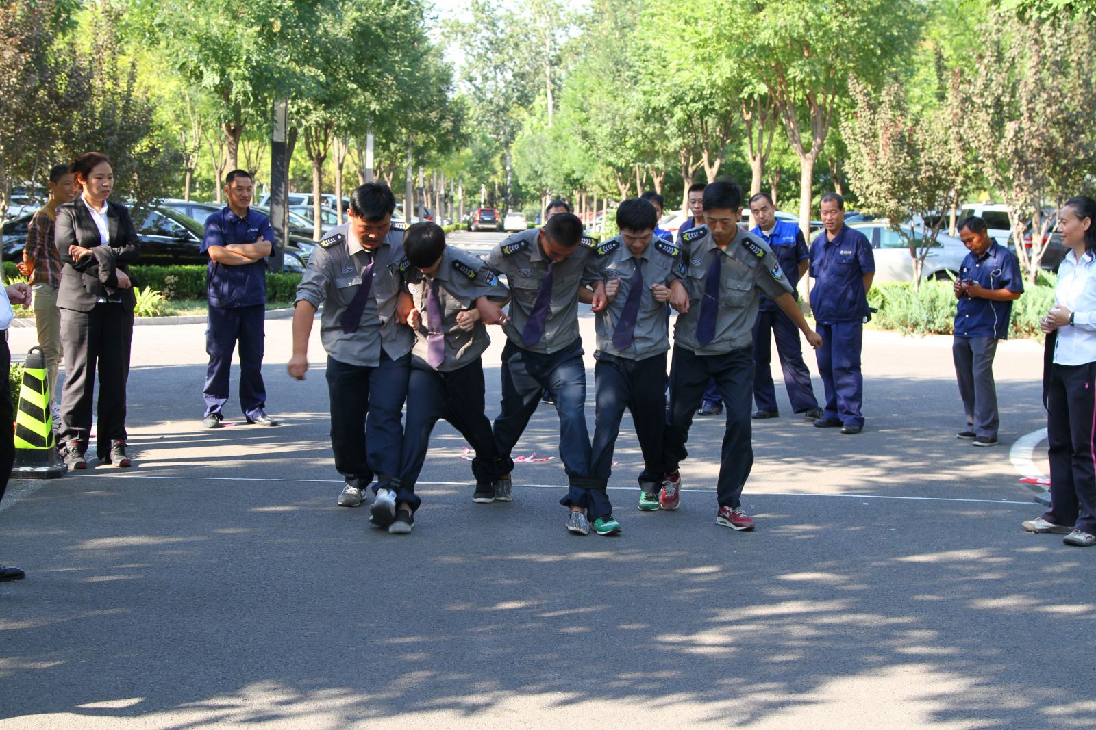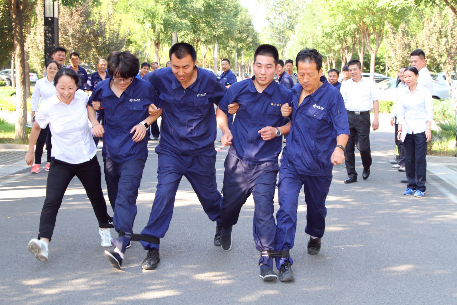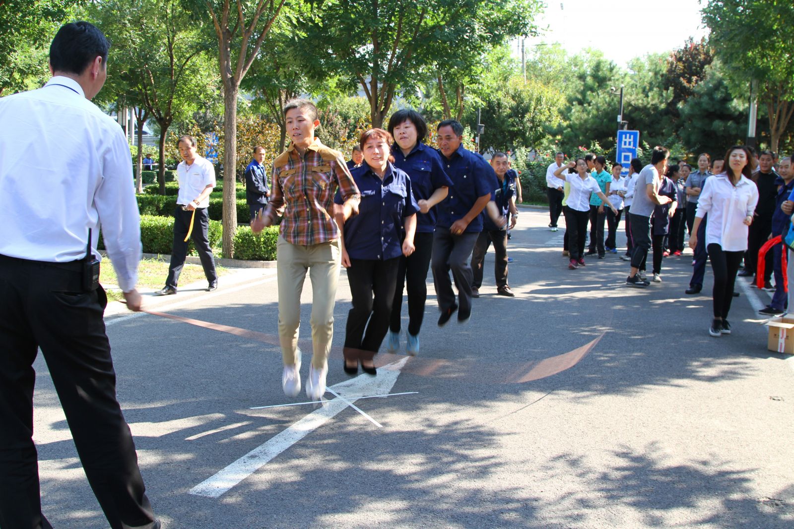 此次運動會,共有團體項目6個,分別是:跳大繩、摸石過河、五人六足、傳遞呼啦圈、你來表演我來猜、蒙眼敲敲;個人項目2個,分別是:跳繩和踢毽。運動會分三天進行,分別在每天的14:00——15:00舉行,所有參賽隊伍共有120隊,包括天工公司員工、外包車場人員、外包保安人員、外包保潔人員共計109人參加了此次運動會,這次運動會的召開加強了天工公司企業文化建設,增強了員工的凝聚力。