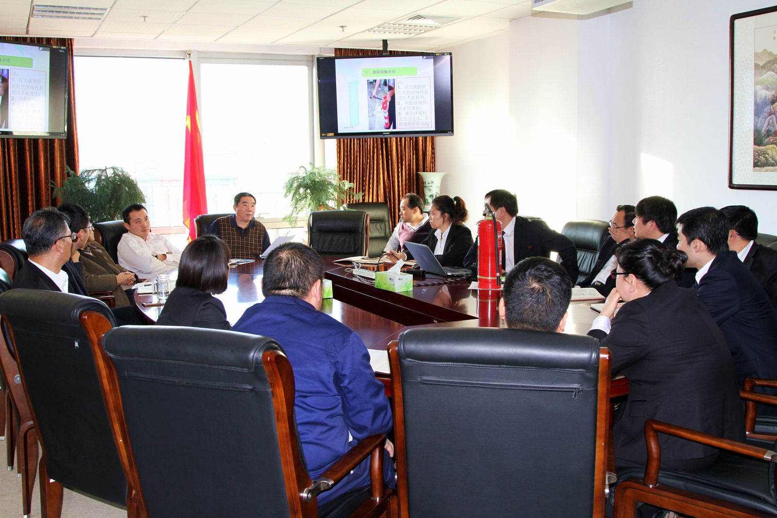 2015年12月10日,天工公司周四理論學習會在四層412會議室召開,學習內容分為消防工作概述、消防基本知識、消防設施介紹、消防逃生方法等四個方面。這次培訓是為了進一步強化公司高管及公司中層人員的消防安全意識,熟練掌握相關理論知識,保障公司的安全運營。董事長張衛鋼、總經理劉臨、副總經理吳豪偉、副總經理高亮、董事長助理張錫紅、總經理助理李佐福及公司中層人員參加了會議。