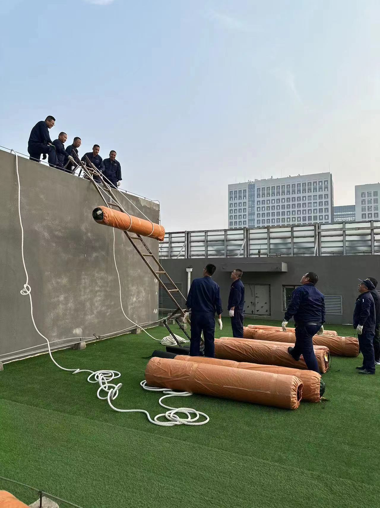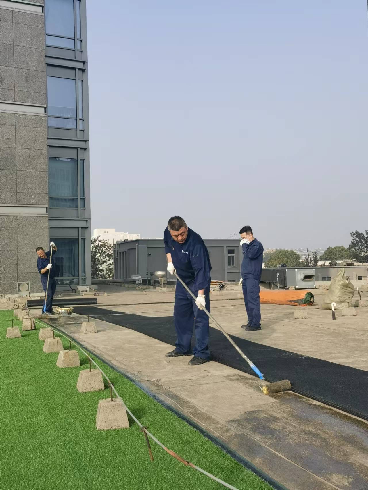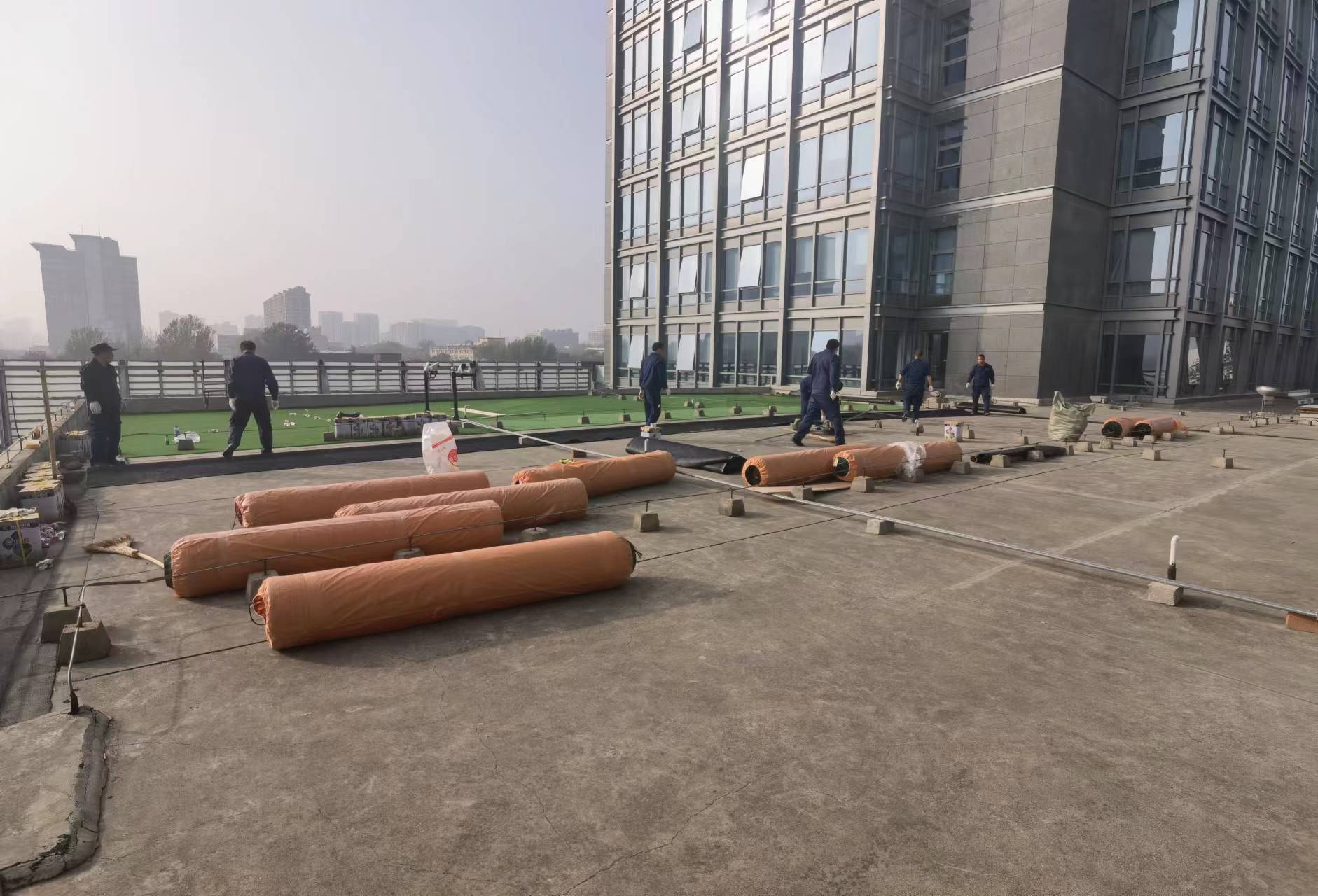 為提高大廈的視覺環境、充分利用房頂有效空間,2023年8月起,天工公司在天工大廈3層裙房樓頂開始鋪設人造草坪。人造草坪具有良好的吸音效果,可以降低屋頂噪音、降低屋頂溫度、減少夏季的熱傳導。工程部不畏炎熱,克服困難齊上陣,歷時3個月,將草坪整整齊齊的鋪設在3層裙房樓頂上。