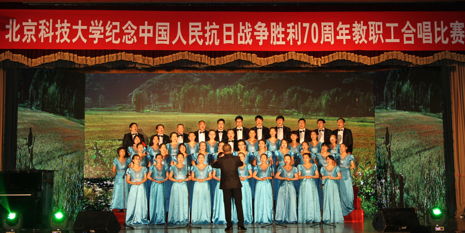 7月3日下午,北京科技大學紀念中國人民抗日戰爭勝利70周年教職工合唱比賽在教工禮堂舉辦,全校共18支代表隊參加了比賽,經過專業評審,天工公司參加的產業集團代表隊榮獲一等獎。