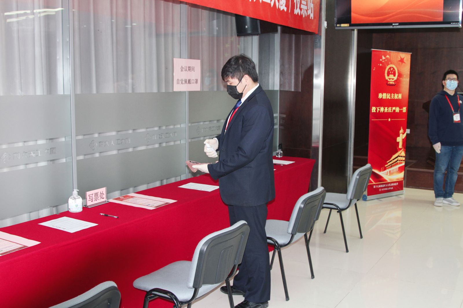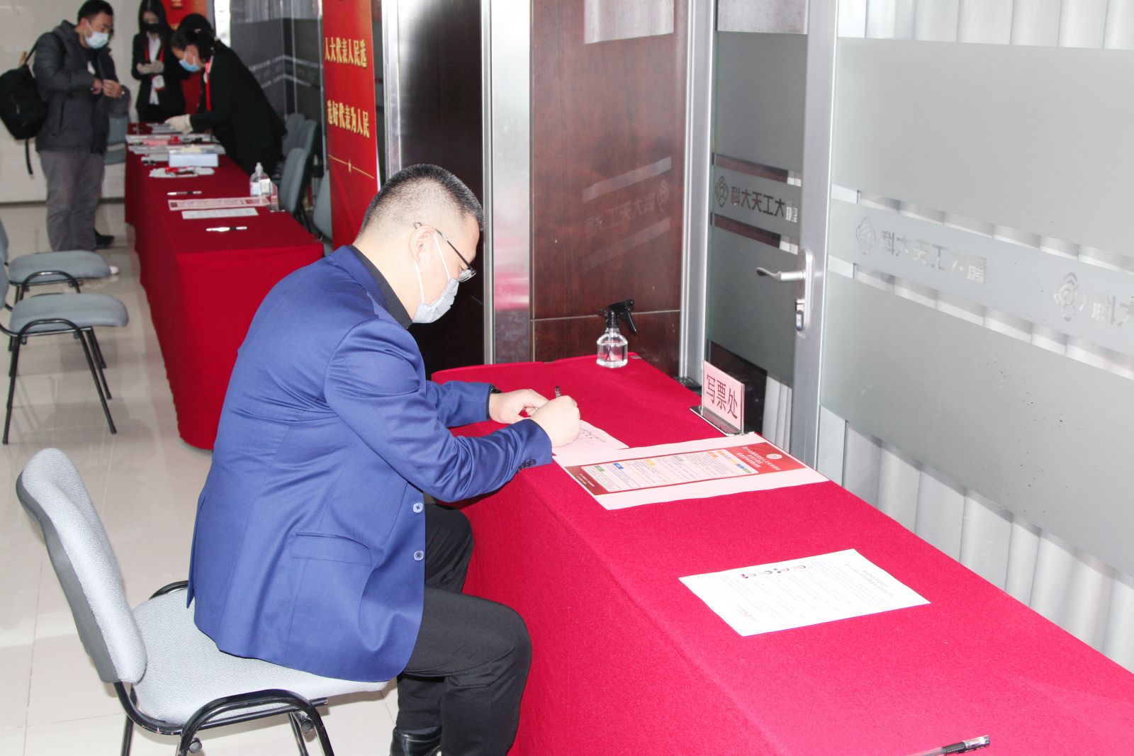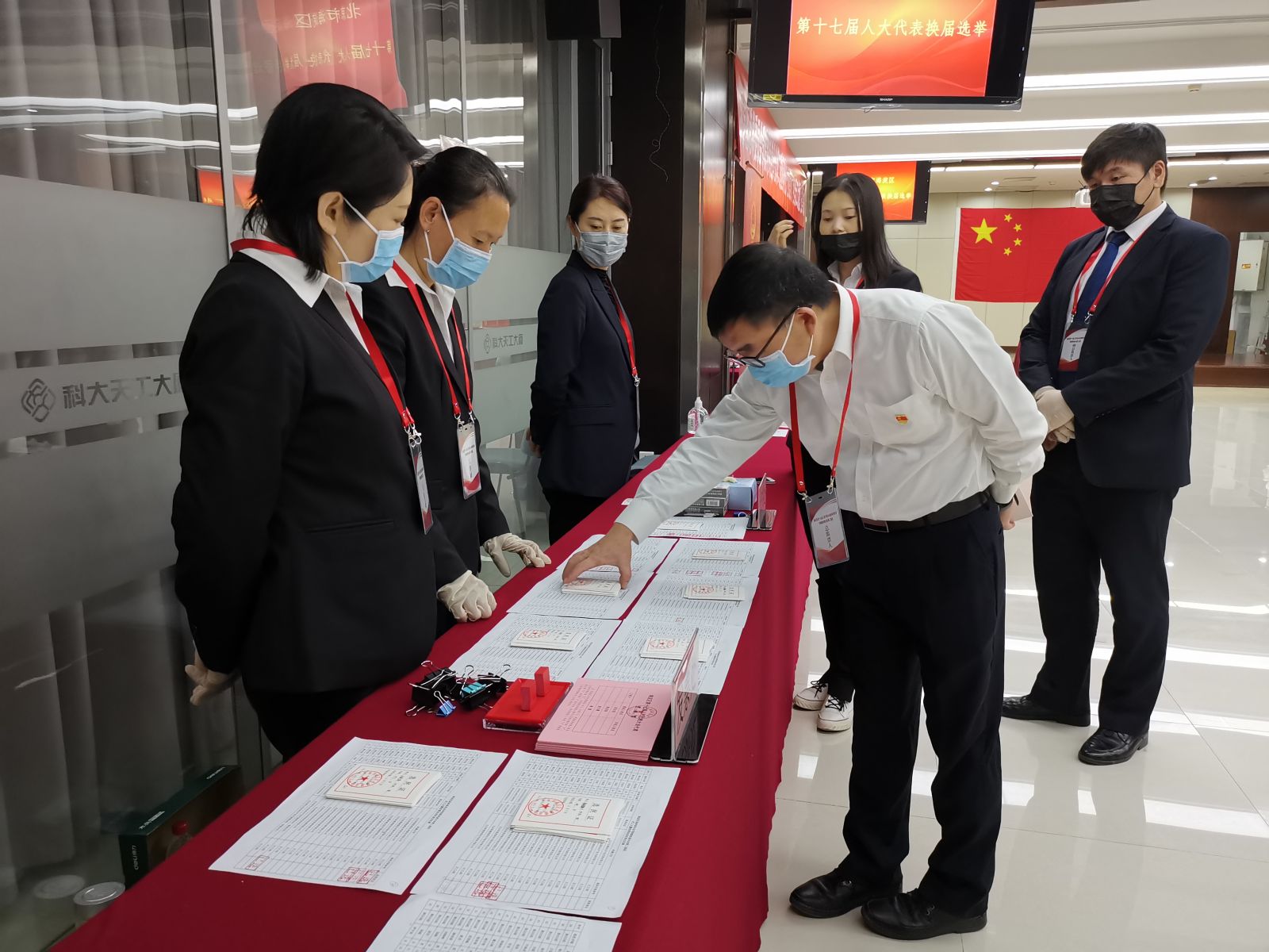 根據北科大選舉工作組的要求,成立科技產業集團(包含天工大廈)投票站和方興大廈投票站選舉工作小組,科技產業集團黨委書記高杰擔任小組組長,天工公司總經理陳興禹為副組長,資產公司綜合辦公室主任張威和天工公司綜合部副經理孫桐帶領部門相關人員全力配合此次選舉工作。工作小組對此次選舉工作作出了周密部署和妥善安排,認真籌備、精心組織、廣泛發動宣傳,及時公布選民登記情況和候選人信息,保證選舉工作順利進行。