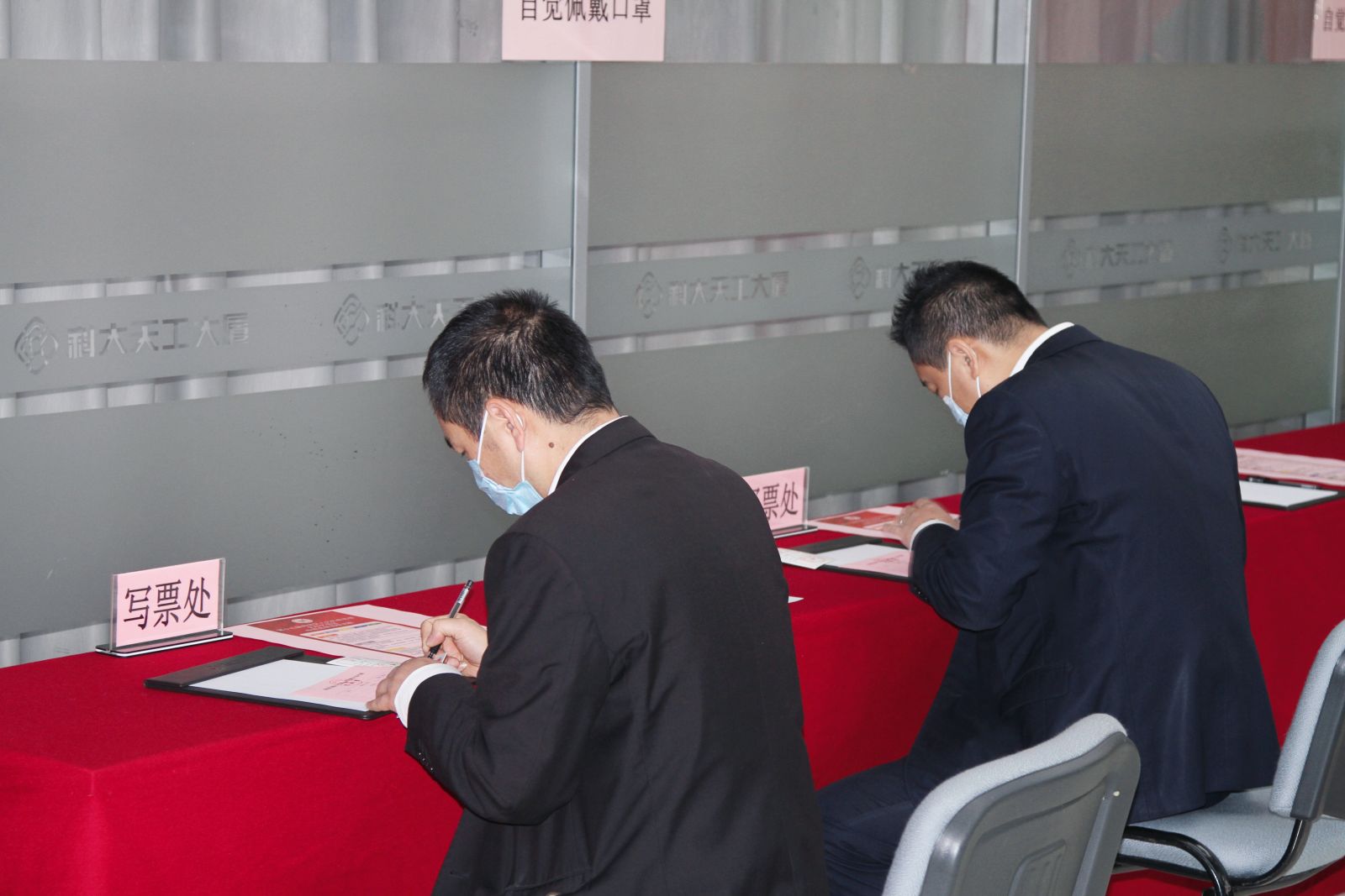 截至11月5日,科技產業集團登記選民88人,天工大廈登記選民169人,方興大廈登記選民86人。早上8點30分,選舉工作小組全體成員到位,現場氛圍莊重熱烈,五星紅旗鮮艷奪目,紅色票箱擺在醒目位置,驗證處、發票處、解說處、寫票處、代書處、秘密寫票處等排列有序。8點50分,科技產業集團黨委秘書周隆熛主持開場,介紹投票站選民登記情況及投票時間安排,總監票人天工公司總經理陳興禹主持監票工作。