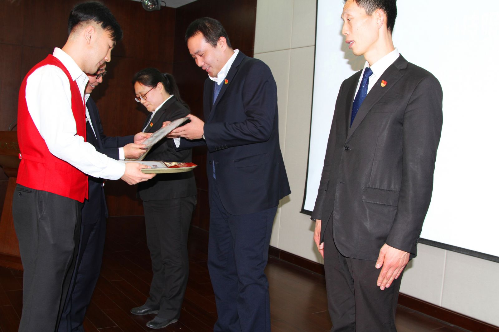 常務副總經理陳興禹為優秀黨員頒發獎狀和獎金