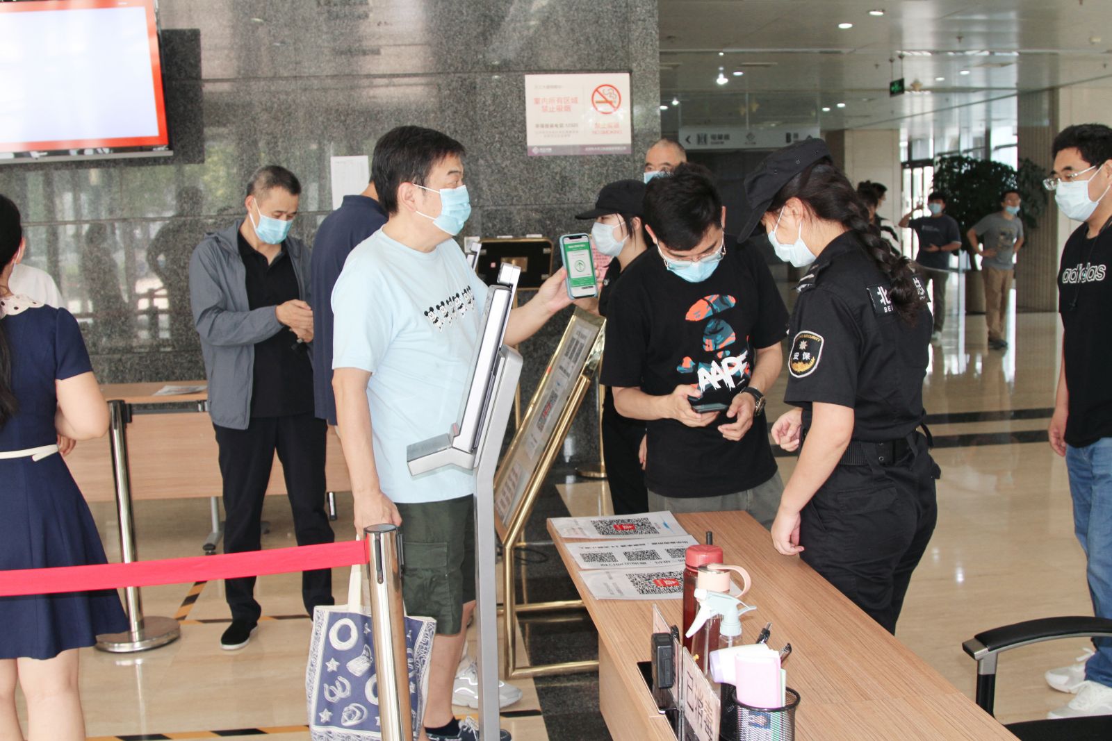 8月2日,學院路街道蒞臨天工大廈視察疫情防控工作,著重強調嚴格落實“四方責任”,對有中高風險地區旅居史以及與涉疫人員、地區、場所有交集的人員開展全面排查,如發現中高風險旅居史人員回京要督促其立即向所住社區報到。樓宇、企業要嚴格落實主體責任,對員工開展健康檢測,企業員工要落實個人責任,主動向單位報告相關情況。其次是繼續做好樓宇園區防控各項工作,做好“健康碼”+“行程碼”雙碼檢查,嚴格落實測溫驗碼、通風消毒、佩戴口罩、保持社交距離等常態化措施。重點關注樓宇電梯、食堂、洗手間等重點場所的衛生消殺及保潔、保安等重點人員的健康管理。