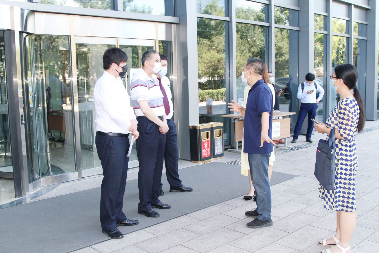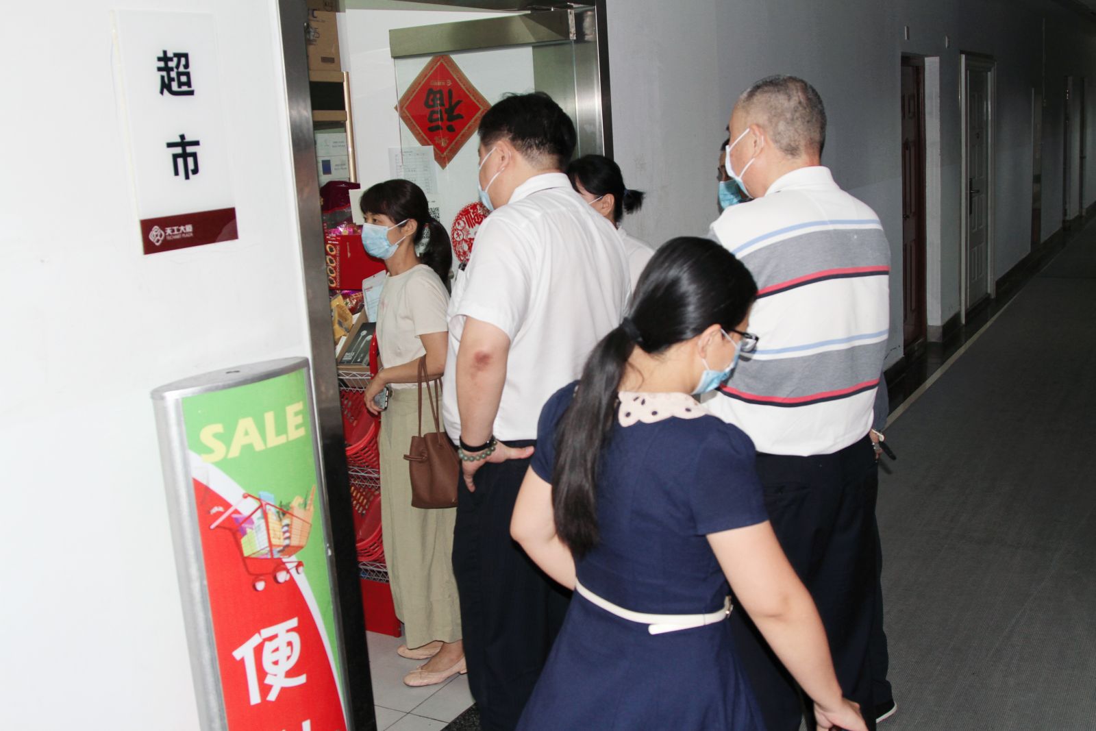 8月4日,海淀區發改委領導蒞臨天工大廈視察疫情防控工作,并前往21層、地下1層超市、餐廳等重點位置進行檢查,再次強調,在大廈內部也要佩戴好口罩,并對天工公司的防控工作表示肯定。