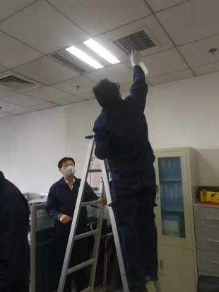 在疫情防控期間,工程部第一時間制定了《天工公司通風方案》和《天工公司機房豎井消殺方案》,工程部在崗員工迅速行動。